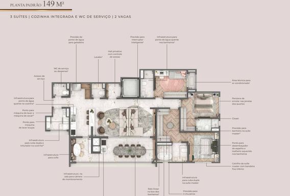 Plantas de 149 m2 para apartamento padrão Plantas de 265 m2 para cobertura!!!