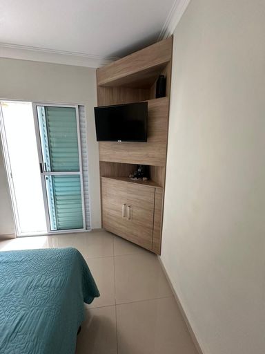 O imóvel possui 2 dormitórios, sendo 1 suíte com sacada, guarda-roupa planejado e painel, oferecendo mais conforto e organização. O segundo dormitório também conta com guarda-roupa, garantindo funcionalidade ao ambiente. A sala é aconchegante e já equipada com estante, perfeita para reunir a família e receber amigos.