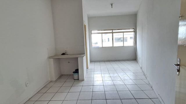 Sala comercial com banheiro interno, janela grande trazendo bastante iluminação natural.