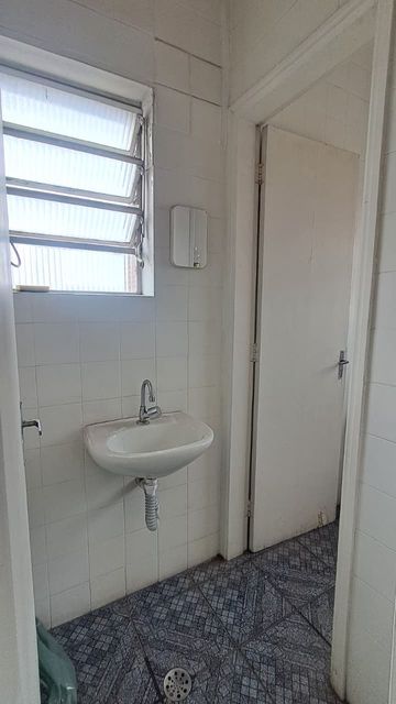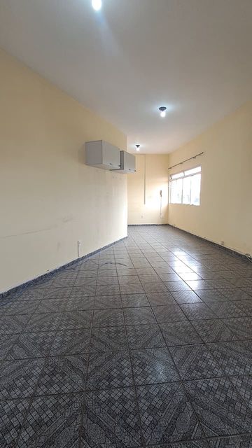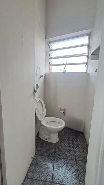 Sala comercial com banheiro interno, espaço amplo e iluminado com 2 janelas.
