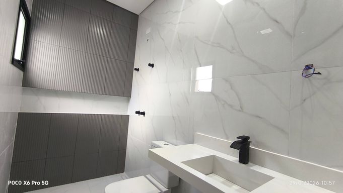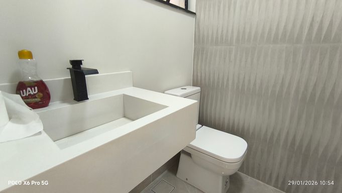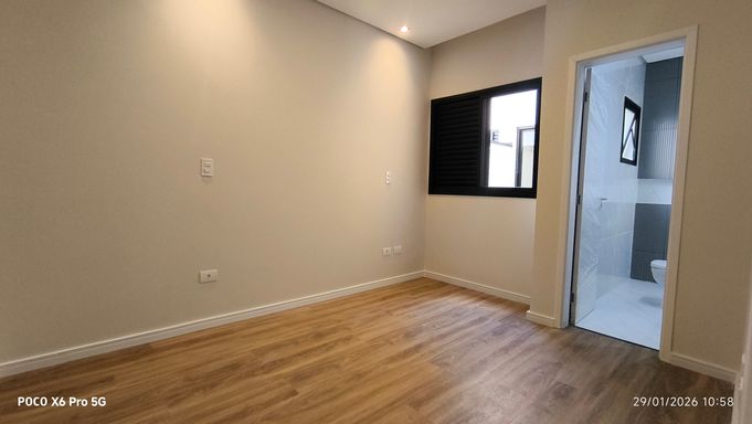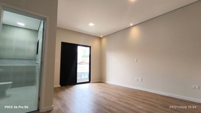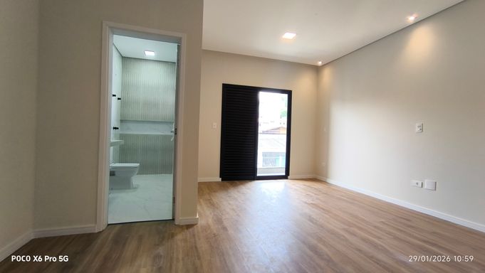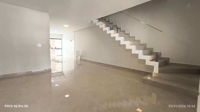 Sobrado Novo com 180 m² de área privativa, 3 suítes sendo 02 com 2 com closet e uma varanda), lavabo, 4 banheiros , home, sala ampla e integrada à cozinha e area goumert, cozinha ampla conceito aberto, área gourmet com churrasqueira, quintal, área de serviço coberta, 4 vagas de garagem e portão automático.