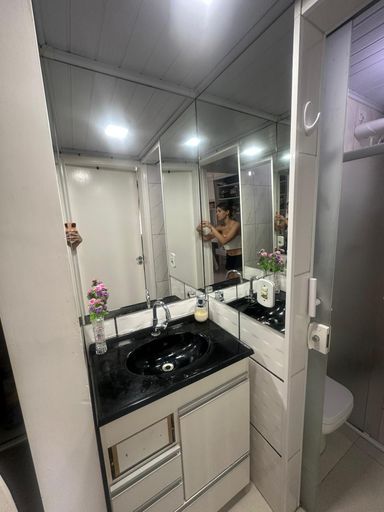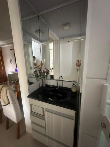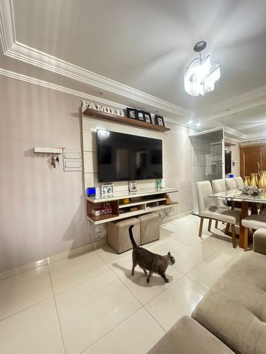 O imóvel conta com móveis planejados, espelhos decorativos na sala, banheiro e lavabo, trazendo sofisticação e amplitude aos ambientes. Tudo em perfeito estado — é realmente entrar e morar.