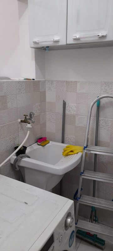 A sala é espaçosa e dividida em dois ambientes, ideal para receber amigos e familiares. O banheiro social é bem equipado, garantindo conforto no dia a dia. A cozinha é funcional e prática, com área de serviço integrada, facilitando as tarefas domésticas.