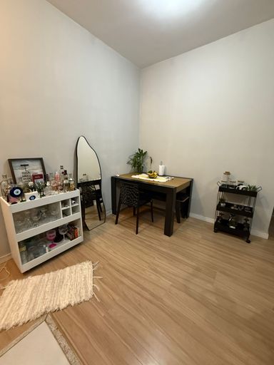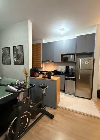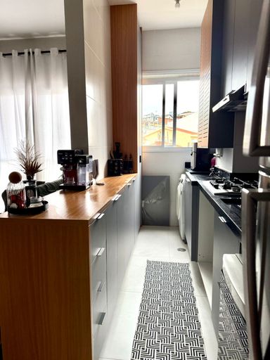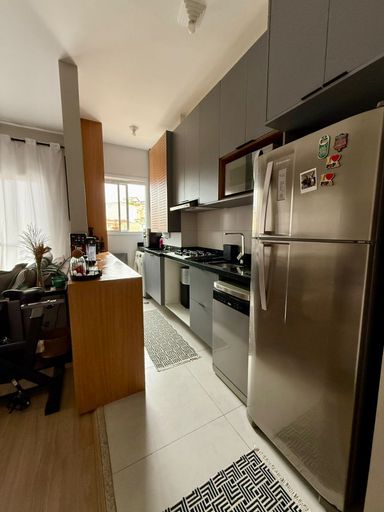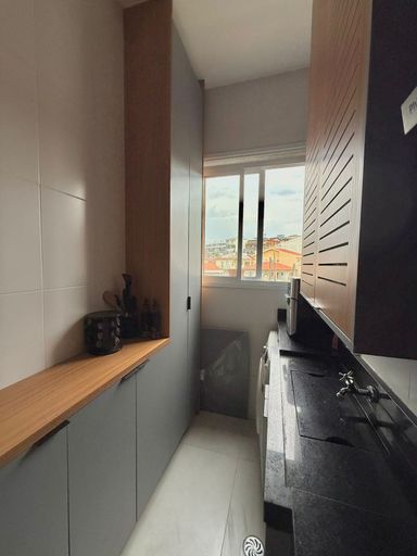 O imóvel conta ainda com pé-direito diferenciado de 2,90m, proporcionando mais amplitude, ventilação e iluminação natural. Possui acabamento de qualidade, com móveis planejados na sala, cozinha e banheiro. A cozinha é completa, com armários planejados até o teto, oferecendo excelente aproveitamento de espaço e organização.