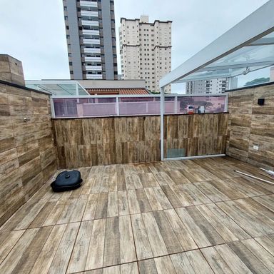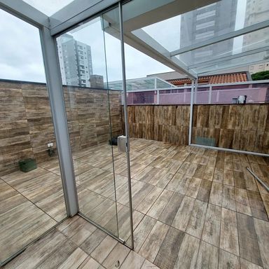 área externa coberta com vidro e parte descoberta.