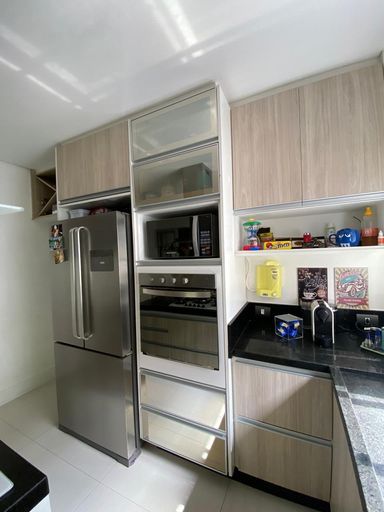 São 2 dormitórios aconchegantes, sendo 1 suíte, ambos equipados com armários planejados e ar-condicionado, proporcionando mais conforto e organização. A sala é integrada e já conta com home planejado e ar-condicionado, criando um espaço perfeito para reunir a família e receber amigos. A cozinha é um verdadeiro destaque, com armários planejados, ilha central com cooktop, forno e coifa, ideal para quem aprecia praticidade e um toque de sofisticação no dia a dia.