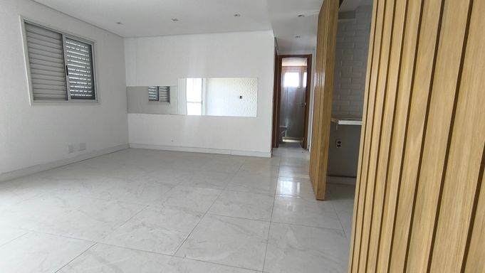 O imóvel está com a sala integrada ao 2º dormitório, proporcionando um espaço aconchegante para receber visitas e aproveitar momentos em família.
