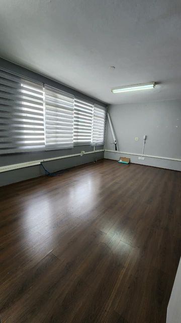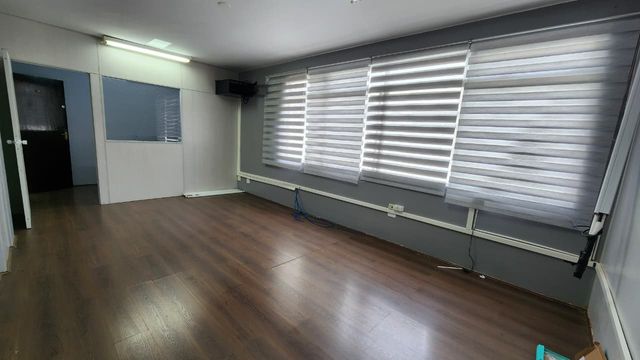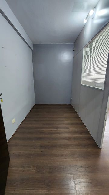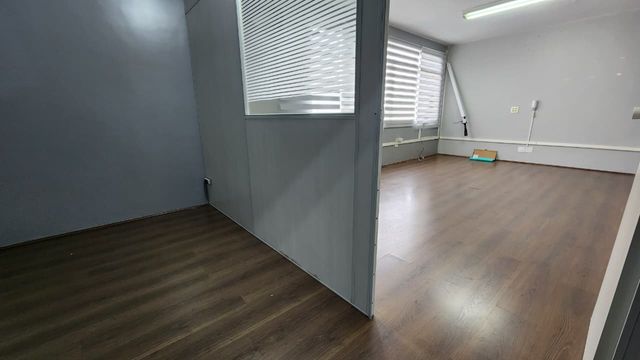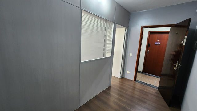 com uma divisória, persianas e estrutura para ar-condicionado .