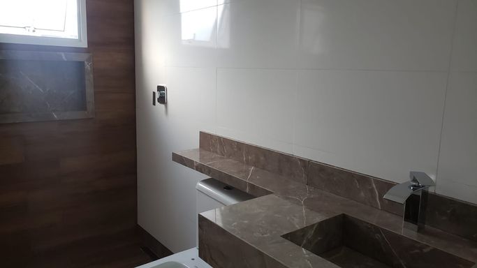 No piso superior, são 3 amplas suítes com excelente padrão de acabamento, piso laminado e banheiros completos com revestimento até o teto, além de infraestrutura para água quente e ar-condicionado na suíte principal. Para completar, o sobrado possui um sótão funcional com espaço adicional para armazenamento e instalação de aquecedor a gás.